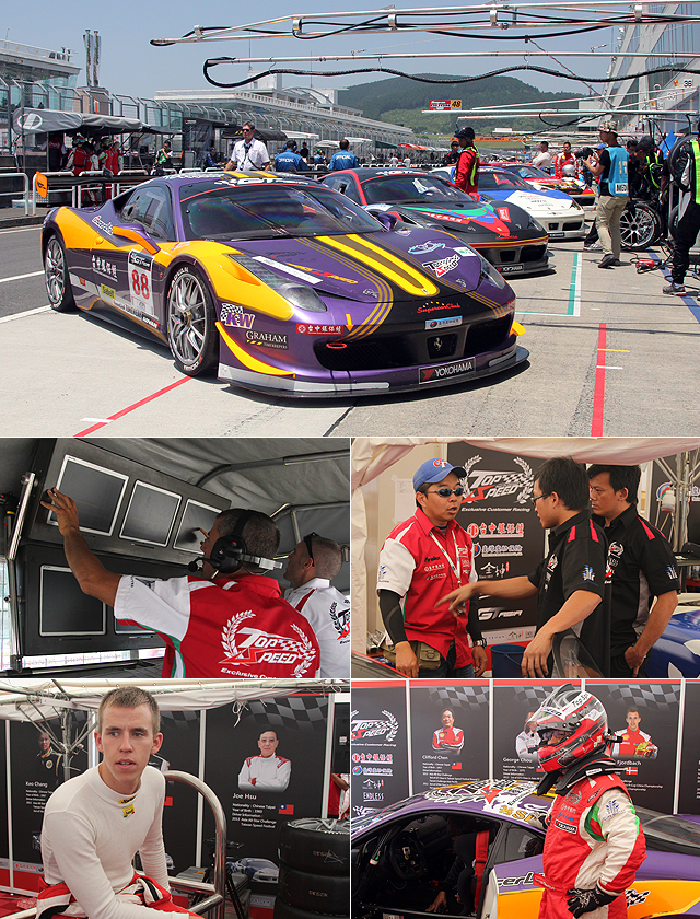 儘管Top Speed參加的是業餘組競爭、旗下車手多半也都非職業級車手,不過對比賽的投入依然相當認真與熱情,賽前賽後車隊人員都相當積極的參與討論,而左下圖與周哲男搭檔的Thomas Fjordbach,為陣中最年輕的車手,除了參與GT Asia賽事之外,還將眼光放在Super GT。
