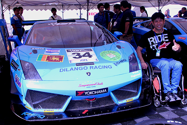 本次在賽道上,還見到了日本知名車手青木拓磨 (Takuma Aoki) ,殘而不廢的精神更讓筆者動容,他因為1998年的一場意外導致下半身癱瘓,再也無法騎著機車在賽道上奔馳,生活上也都需要輪椅的協助,不過他對賽車的精神並沒有隨著身體也跟著癱瘓,而是更進一步轉戰四輪賽車,駕著Lamborghini Gallardo LP-560 GT3與好手一起競爭。