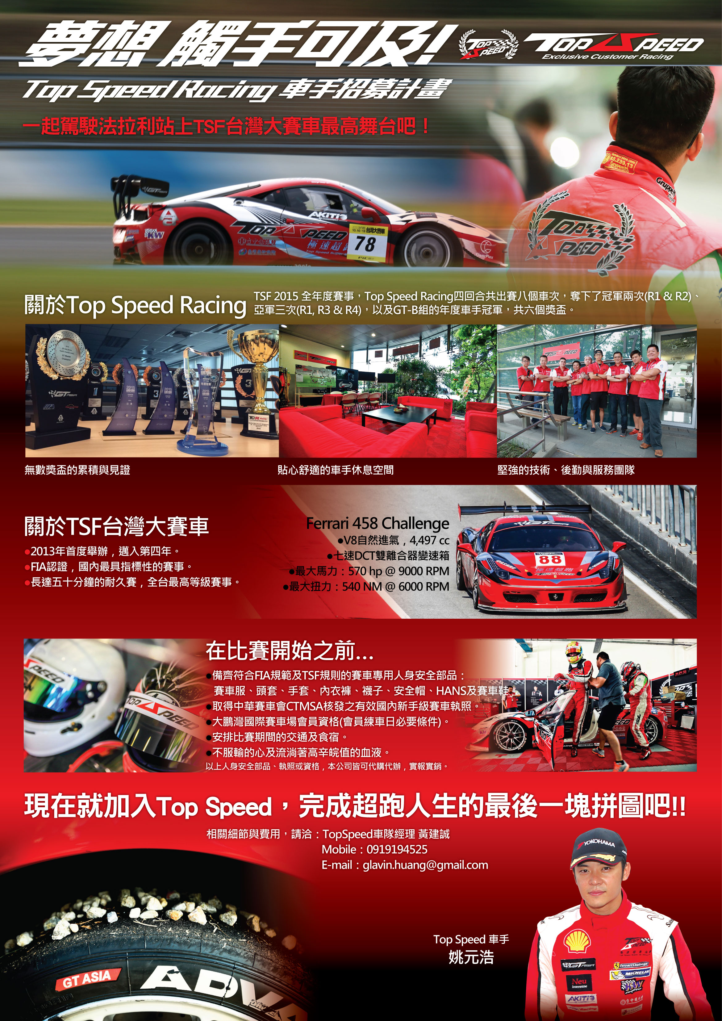 一起駕駛法拉利站上TSF台灣大賽車最高舞台吧!